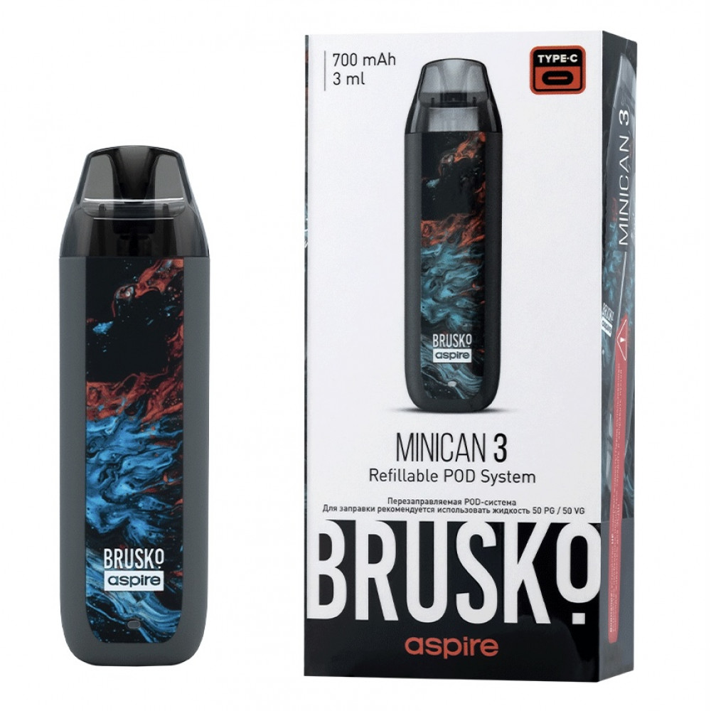 Перезаправляемая Под-Система Бруско Миникан 3 (Brusko Minican 3) 700 mah, Серый Флюид - купить в Луге
